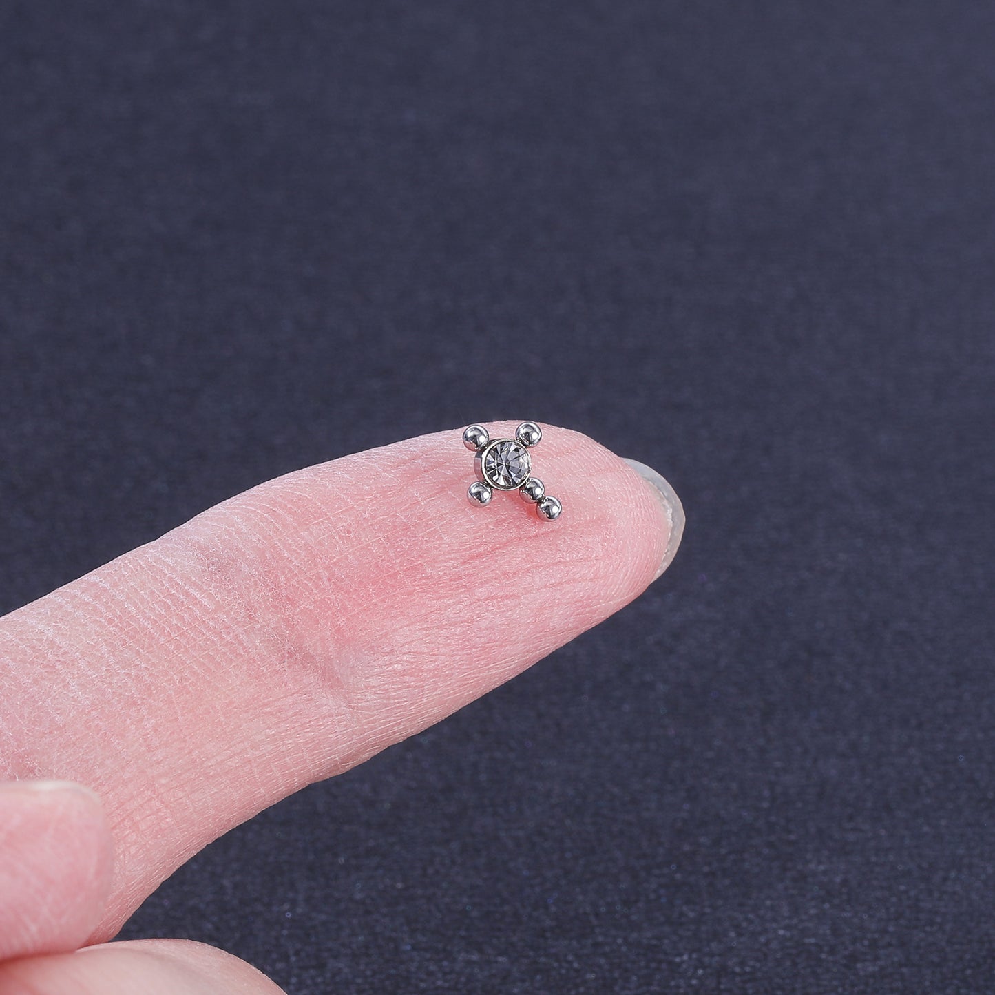 18g/20g Shiny Zircon Nose Stud Flat Back Nose Ring Internal Thread Nostril Piercing