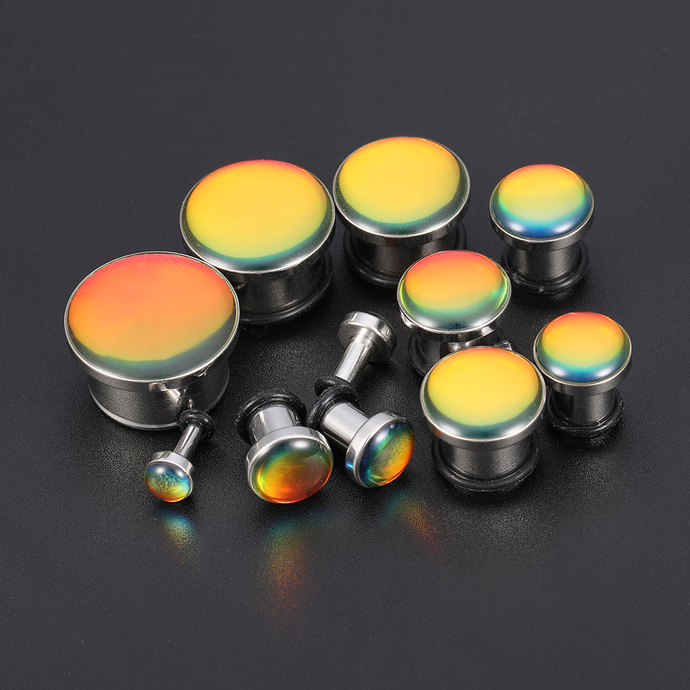 6-16mm Stainless Steel Orange Changing Ear Tunnels Single Flare Expander Ear Gauges