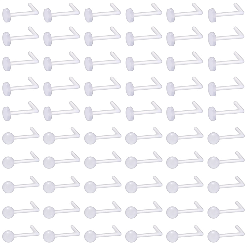 60Pcs/Set Clear Bioflex Nose Rings Piercing L Shaped Nose Studs-Economic Set