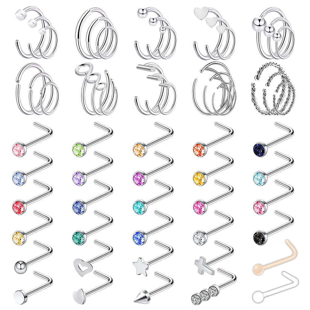 - Order Included: 30 pcs L Shaped Nose Studs, 30 pcs Nose Rings, Economical set which deserves your buying.