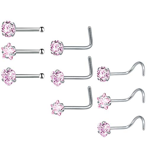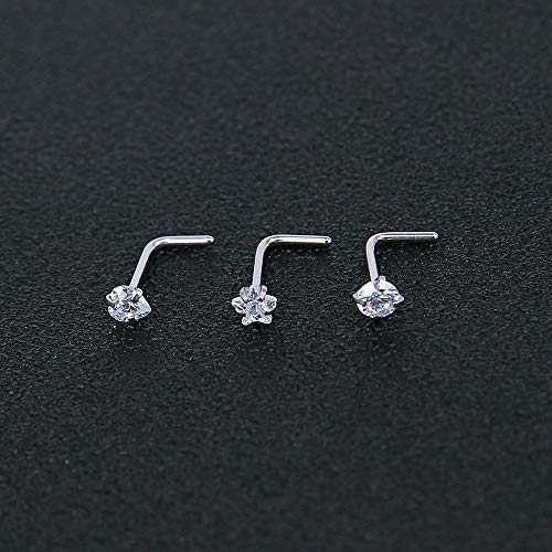 - Hook Type: Screw, Nose Bone, L-Shape, Stone: prong setting with Cubic Zirconia-3mm