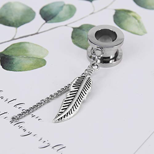 Surgical Steel Ear Tunnel Feather Chain Dangle Gauge Flesh Tunnel