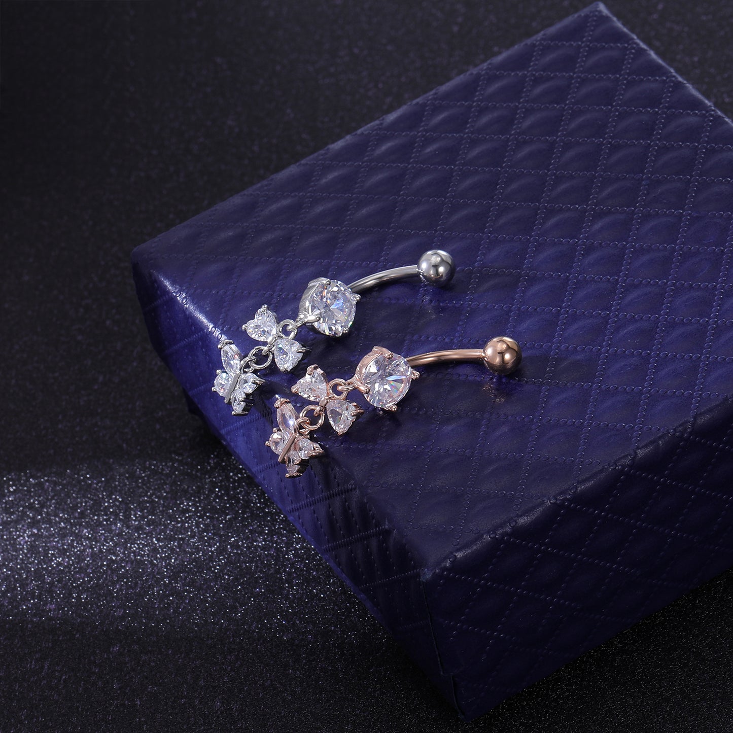 - Navel Ring Design: Butterfly Rose Gold Zirconia Dangle Belly Button Piercing.
