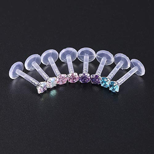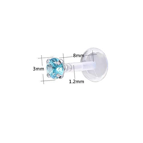 - Bar Thickness: 16G (1.2mm), Bar Length: 8mm, Crystal Size: 3mm/4mm. Perfect for Labret Monroe Lip Ring,Conch, Helix, Tragus,Cartilage Earrings piercing