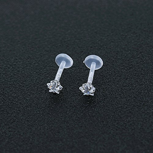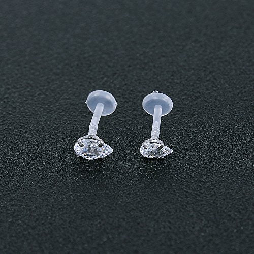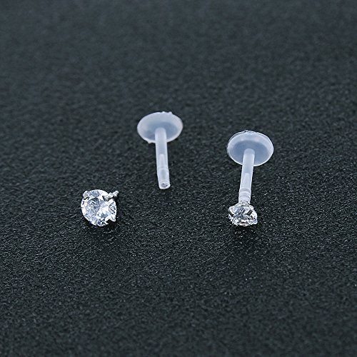 - Plastic Post Retainer with prong setting AAA Cubic Zirconia, Lightweight and Hypoallergenic, Comfortable to Wear and especially Suit for Sensitive Skin.