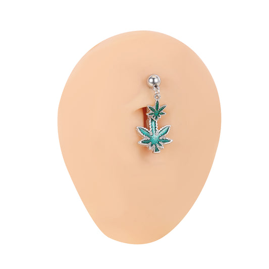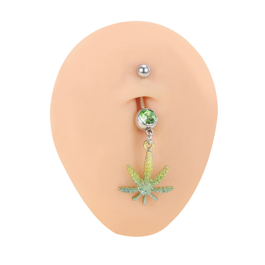 14G Green Grass Leaf Belly Navel Rings Cubic Zirconia Belly Button Rings