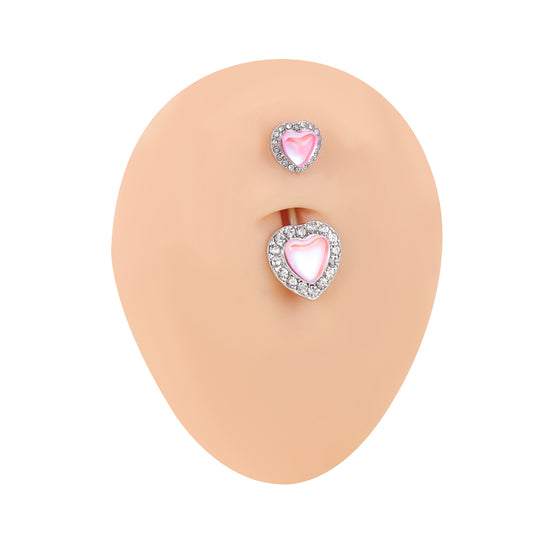14G Double Heart Belly Navel Rings Cubic Zirconia Belly Button Rings
