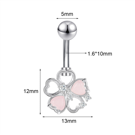 14G Heart Flower Belly Navel Rings Pink Stone Belly Button Rings