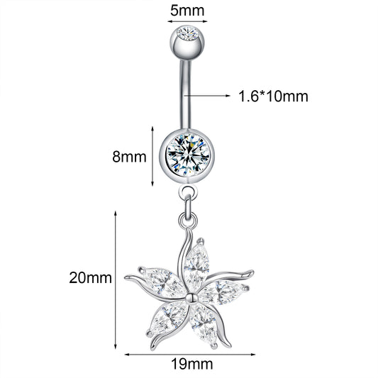 14G Flower Belly Navel Rings Cubic Zirconia Belly Button Rings