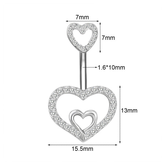 14G Double Heart Belly Navel Rings Bling Zirconia Belly Button Rings