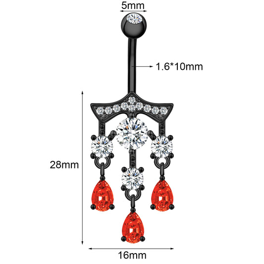 14G Vintage Belly Navel Rings Bling Zirconia Dangle Belly Button Rings