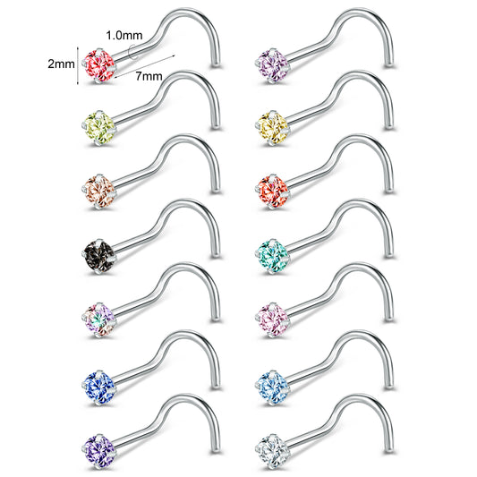 14Pcs/Set Nose Studs Piercing Surgical Steel Screws Nose Rings-Economic Set