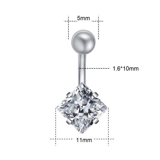 14g Square Big Crystal Belly Button Rings Stainless Steel Navel Piercing Jewelry