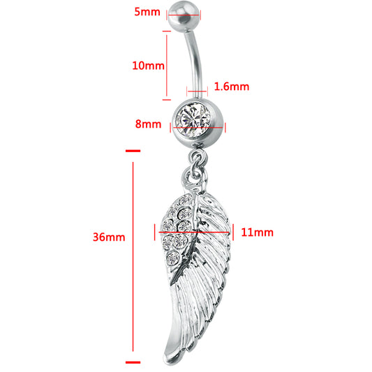 14g Wing Stainless Steel Belly Button Rings Cubic Zirconia Dangle Navel Piercing Jewelry