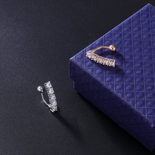 14g Square Zirconia Belly Button Rings Stainless Steel Belly Navel Piercing Jewelry