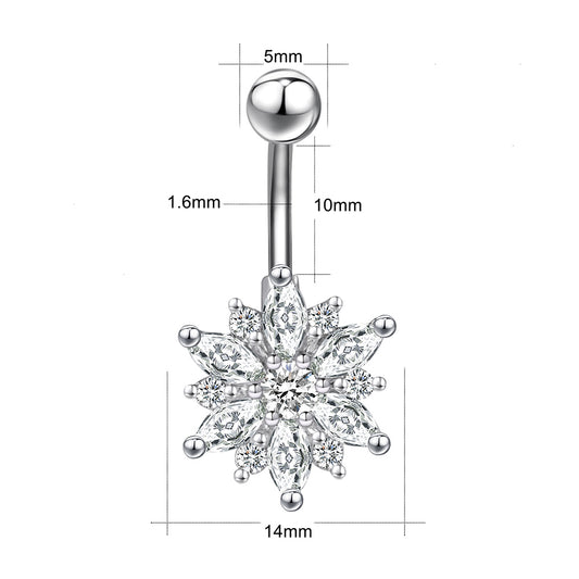14g Snowflake Belly Button Rings Cubic Zirconia Belly Navel Piercing Jewelry