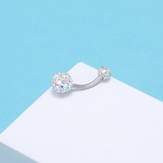 14g Double White Crystal Ball Belly Button Rings Stainless Steel Belly Navel Piercing Jewelry