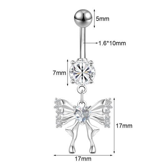 14G Butterfly Belly Navel Rings Bling Zirconia Dangle Belly Button Rings