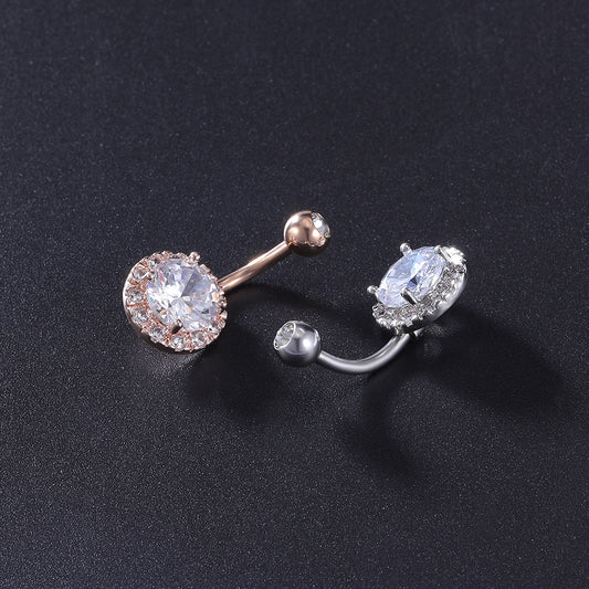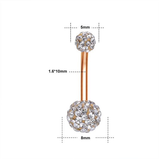14g Rose Gold Crystal Ball Belly Button Rings Stainless Steel Belly Navel Piercing Jewelry