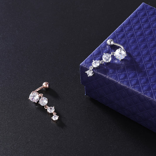 14g Drop Dangle Belly Button Rings Rose Gold Curved Barbell Belly Navel Piercing Jewelry
