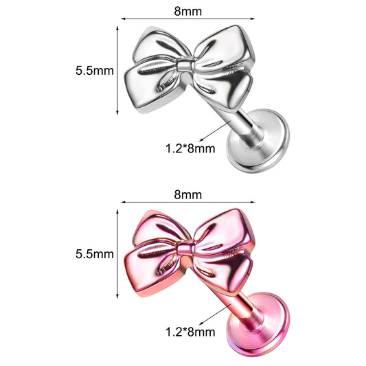 16g G23 Titanium Labret Ring Bowknot Stud Earring Threaded Conch Helix Lip Piercing