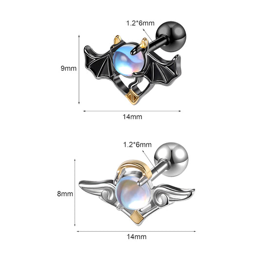 16G Demon Angel Insert Stone Stud Earring Silver Black Tragus Helix Conch Piercing