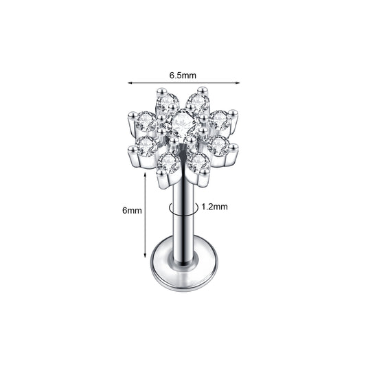 16G Flower Crystal Labret Rings Stainless Steel Tragus Helix Conch Piercing