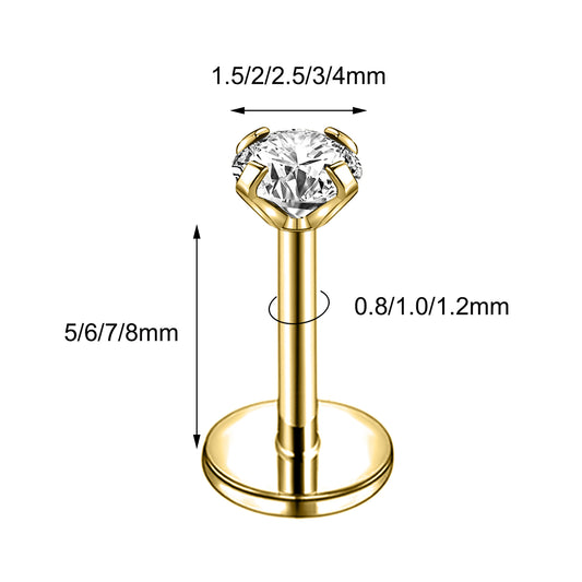 16g/18g/20g Flat Back Earring Shiny Zircon Cartilage Earring Threadless Conch Helix Piercing