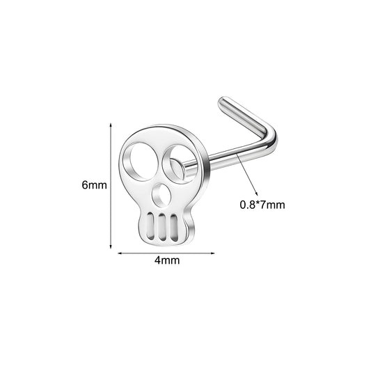 20G Skull Nose Studs Piercing L Shape Nose Rings Halloween Nostril Piercing