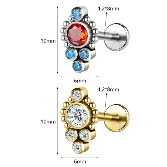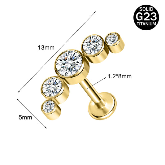 16g G23 Titanium Labret Ring Bling Zircon Stud Earring Threaded Conch Helix Lip Piercing