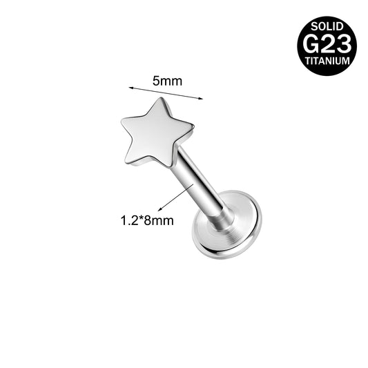 16g G23 Titanium Labret Ring Star Stud Earring Threaded Conch Helix Lip Piercing