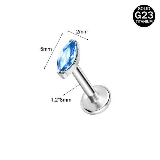 16g G23 Titanium Labret Ring Blue Zircon Stud Earring Threaded Conch Helix Lip Piercing