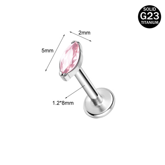 16g G23 Titanium Labret Ring Pink Zircon Stud Earring Threaded Conch Helix Lip Piercing
