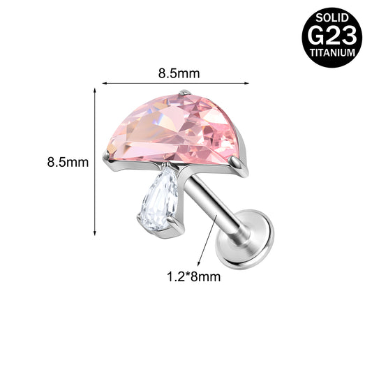 16g G23 Titanium Labret Ring Mushroom Stud Earring Threaded Conch Helix Lip Piercing