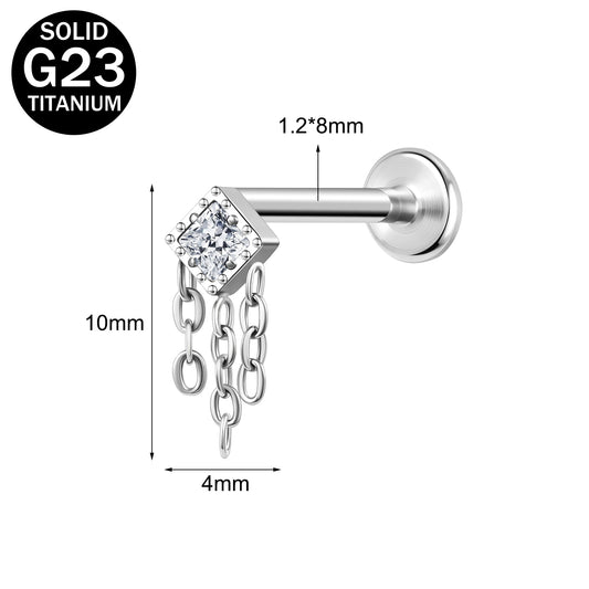 16g G23 Titanium Labret Ring Chain Dangle Stud Earring Threaded Conch Helix Lip Piercing