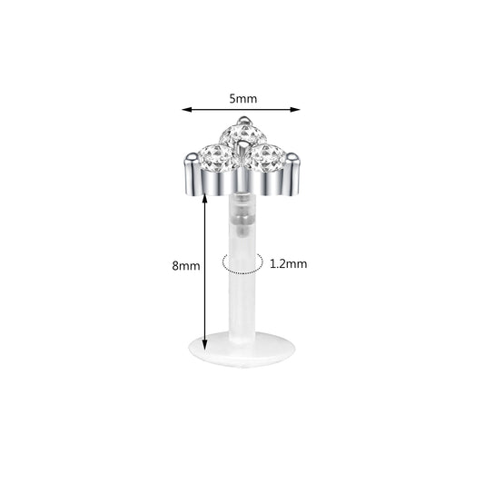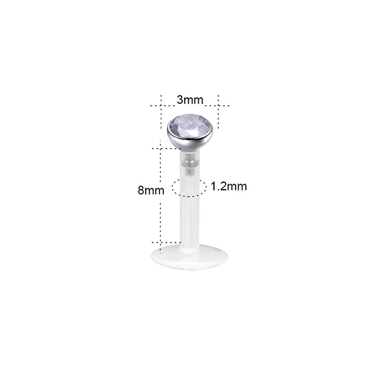 16G Bioflex Zircon Labret Rings Round Tragus Helix Conch Piercing