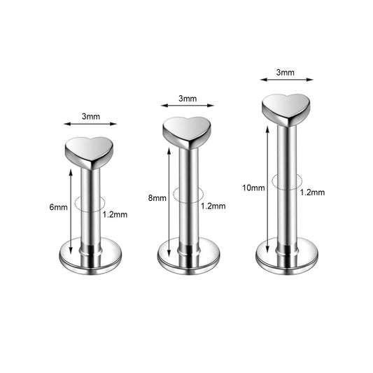 16G Push in Stainless Steel Heart Labret Rings Conch Tragus Helix Monroe Lip Piercing