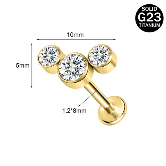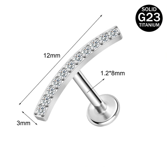 16g G23 Titanium Labret Ring Clear Zircon Stud Earring Threaded Conch Helix Lip Piercing