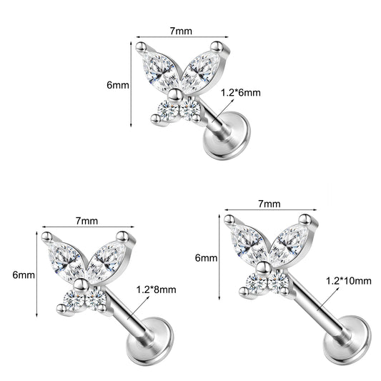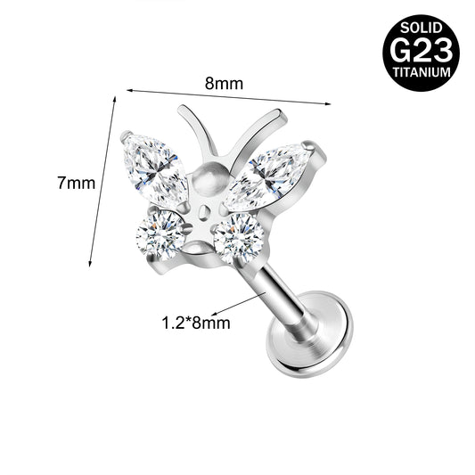 16g G23 Titanium Labret Ring Butterfly Stud Earring Threaded Conch Helix Lip Piercing