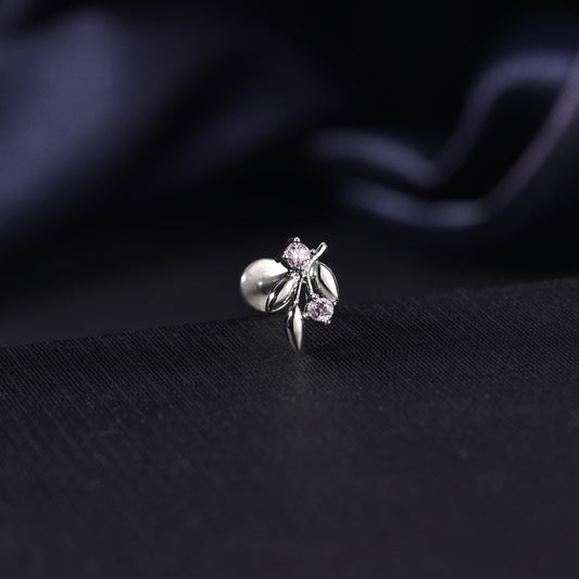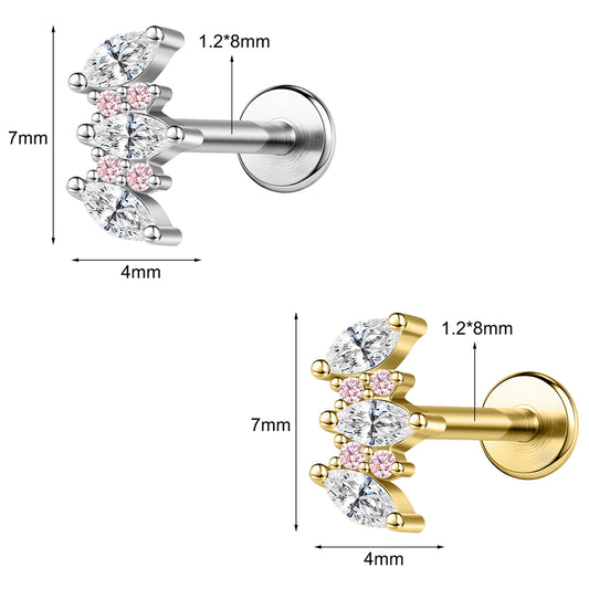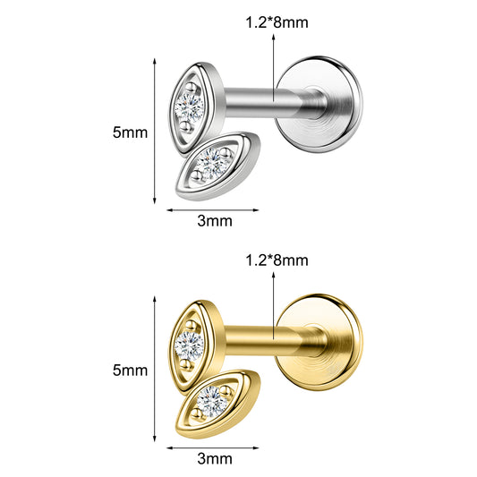 16g Leaf Labret Ring Flat Back Stud Earring CZ Conch Helix Lip Piercing