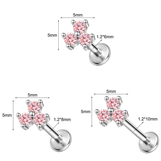 16g Pink Zircon Labret Ring Flat Back Stud Earring Push-in Conch Helix Lip Piercing
