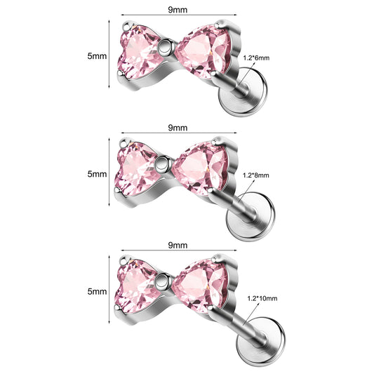 16g Bow Labret Ring Push in Stud Earring Threadless Conch Helix Lip Piercing