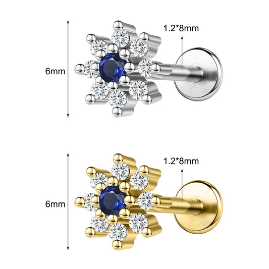 16g Shining Zircon Labret Ring Flat Back Stud Earring Conch Helix Lip Piercing