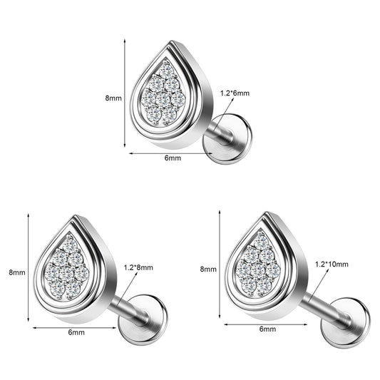 16g Zircon Dangle Labret Ring Flat Back Stud Earring Conch Helix Lip Piercing
