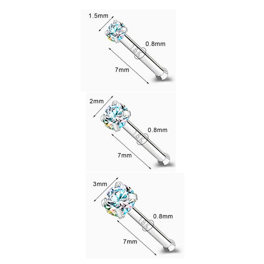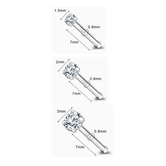 18g/20g Clear Zircon Nose Stud Push-in Nose Ring Threadless Nostril Piercing