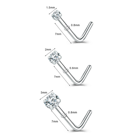 20G White Zircon Nose Studs Piercing L Shape Nose Rings 18K Plated Nostril Piercing