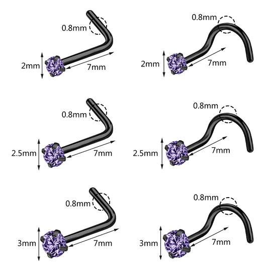 20G Violet Crystal Nose Rings L Shape Nose Ring Black Nose Corkscrew Piercing