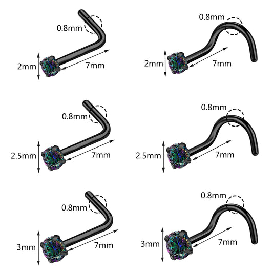 18G/20G Stainlesss Steel Nose Studs L Shape Nose Piercing AB Zirconia Nostril Piercing