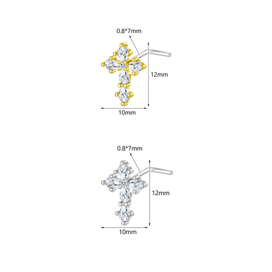 20G Cross White Zircon Nose Studs Piercing L Shape Nose Rings Gold Silver Plated Nostril Piercing