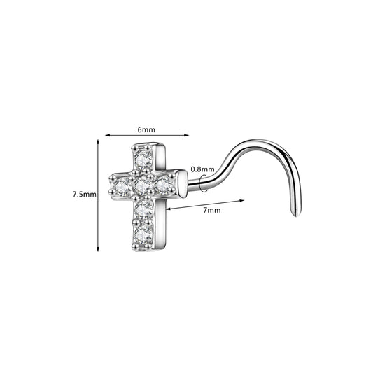 20G Cross White Crystal Nose Studs Piercing Crokscrew Nose Rings Stainless Steel Nostril Piercing